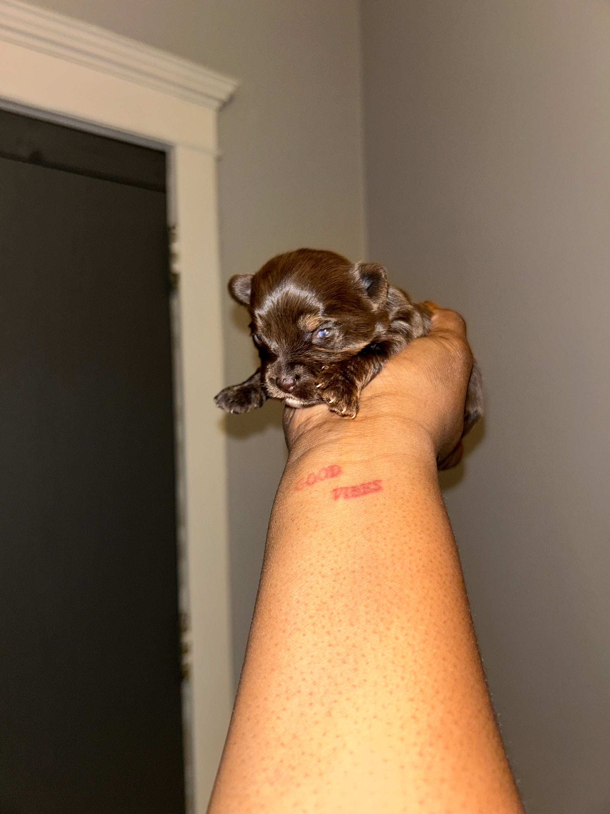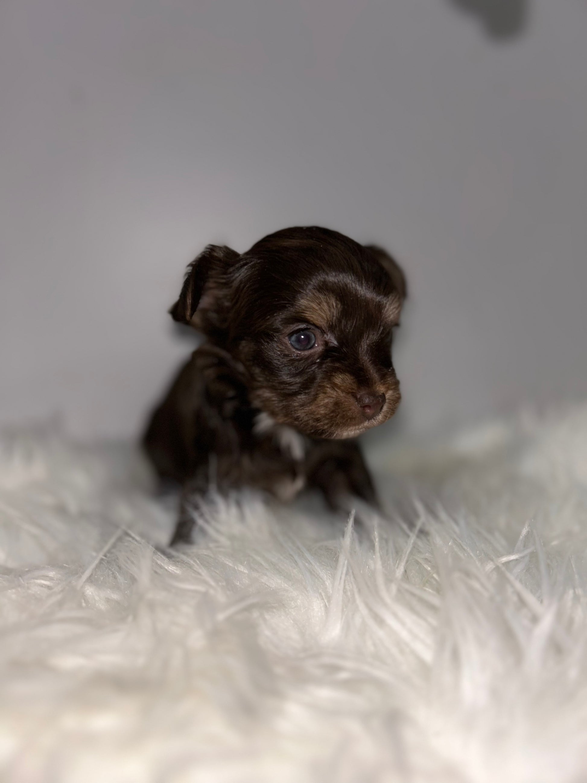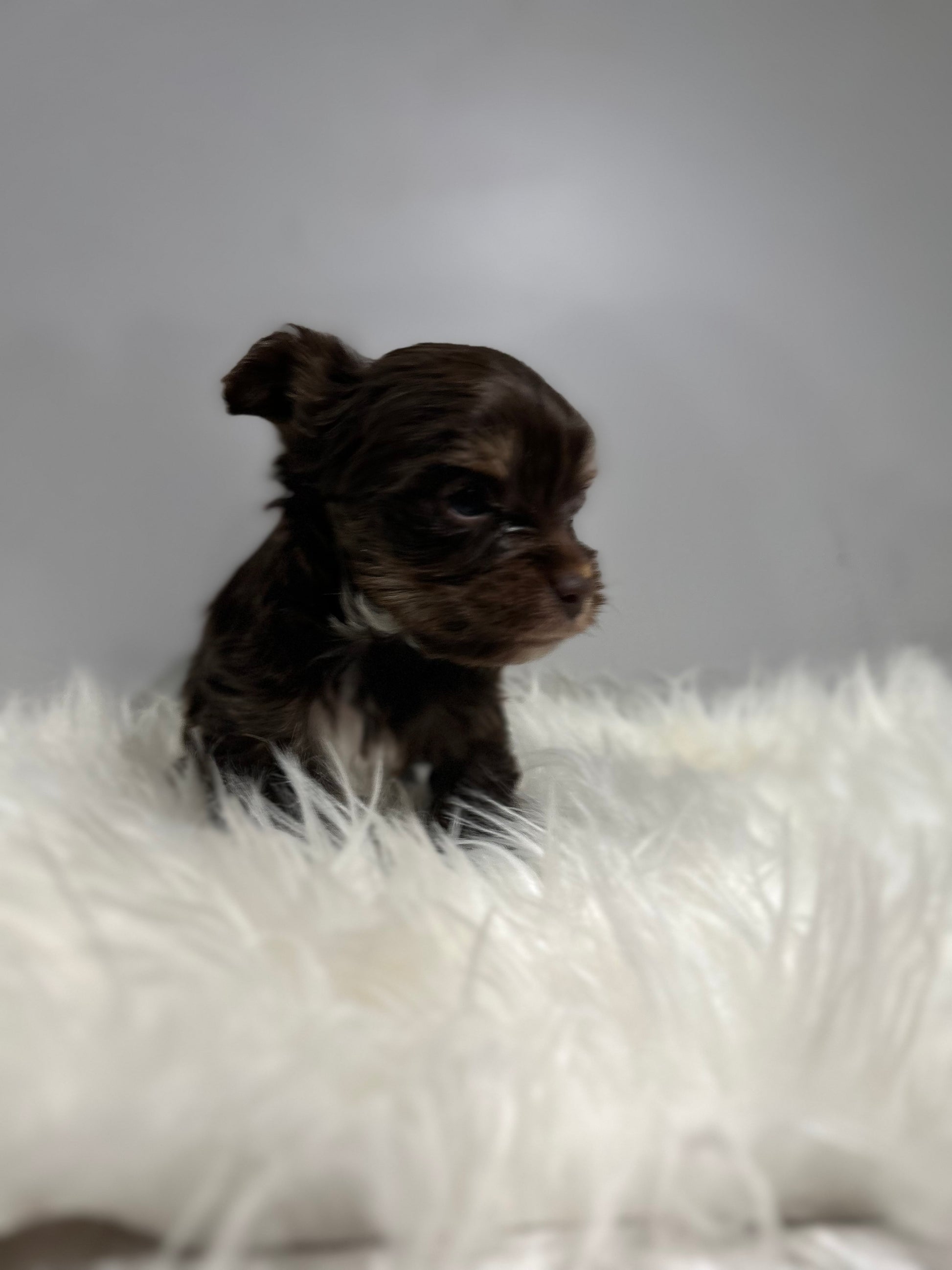 Looking for a sweet companion? Look no further! Meet Visa, the most adorable chocolate Yorkie with a tiny white patch on her chest. She's only 4 grams now, but will grow into a tiny lady. Perfect for Valentine's week pickup. Apply now! It’s $1,000 to reserve this tiny girl via Zelle or ApplePay.